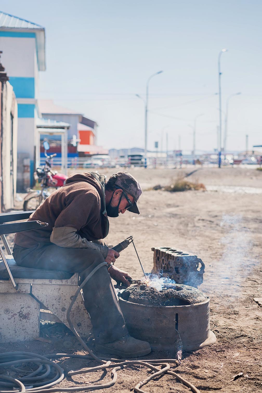 Und schweißen tut er mit einer fake Prada-Sonnenbrille…