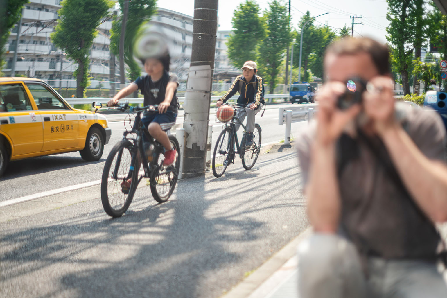 Two boy bicyclists. One with a vortex head :)