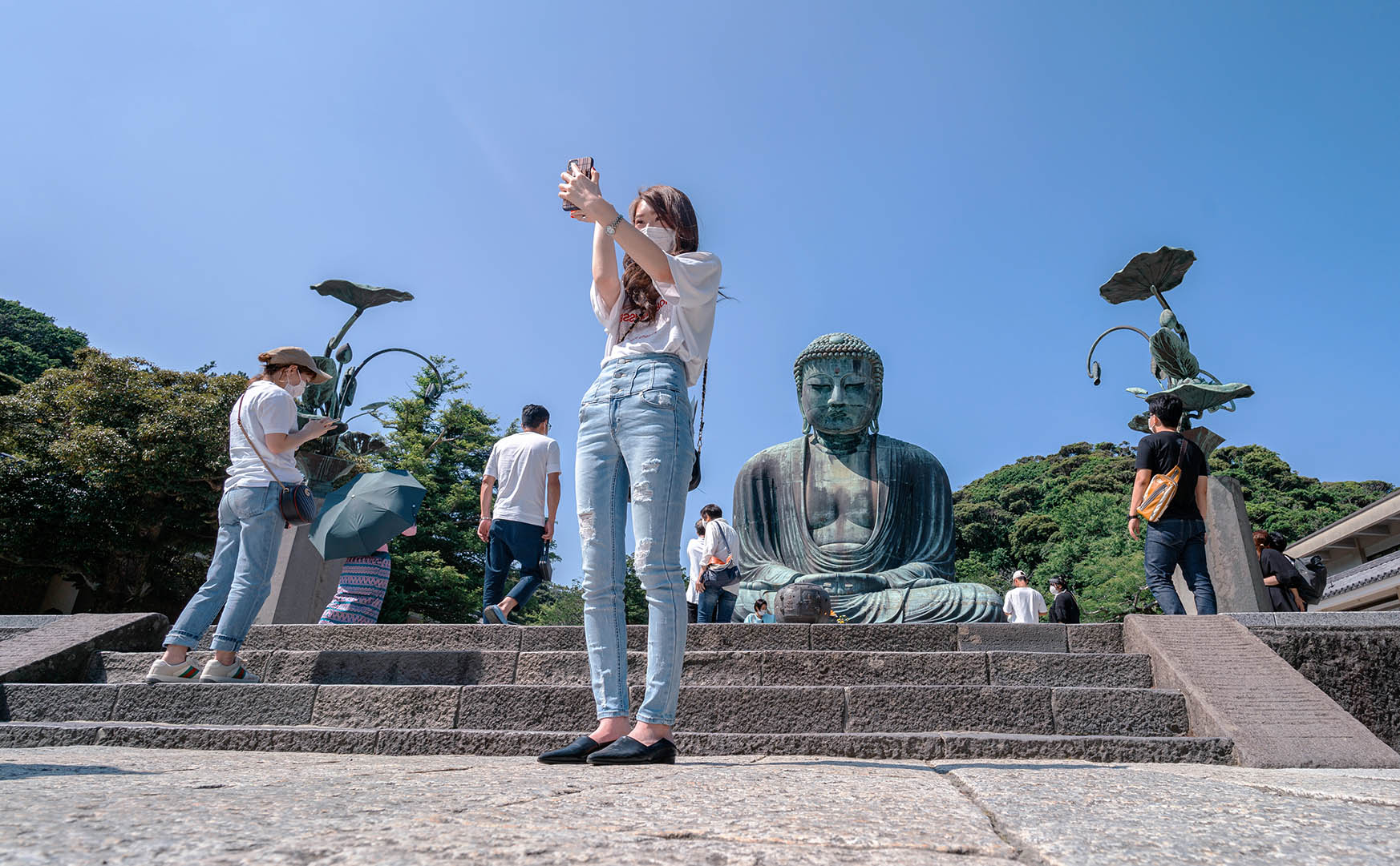Selfie in front of the Buddha statue