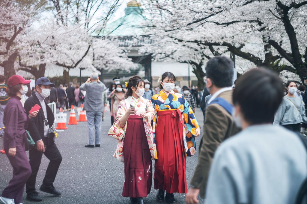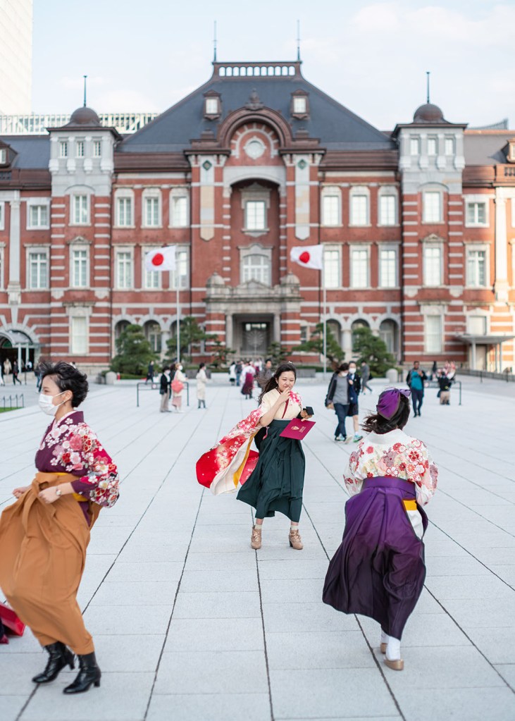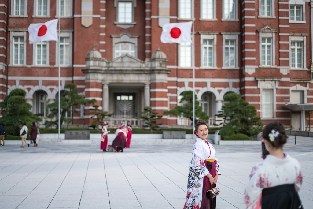 End of March is the time of the university graduation ceremonies in Japan. “Shinsotsu” or the fresh graduates fill the streets in beautiful traditional dresses (that is, girls; boys are in boring suits) and make photos for their family albums. I must say, the time for graduation is chosen well, since end of March is also time of the cherry blossoms…